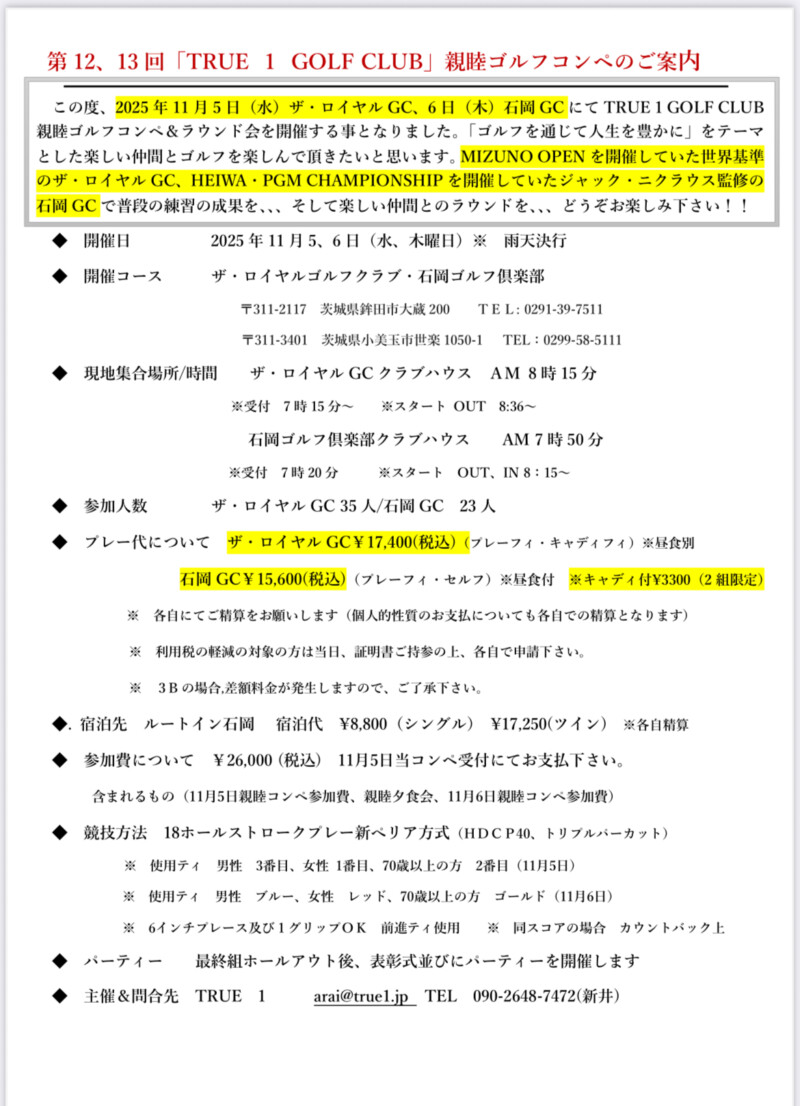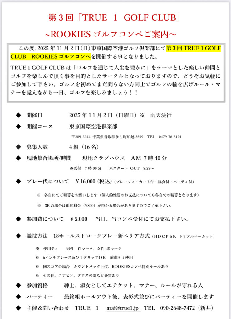 暑い季節も去りゴルフシーズン真っ盛りとなりTRE1での11月2、5、6日とゴルフコンペを開催する事となりました。